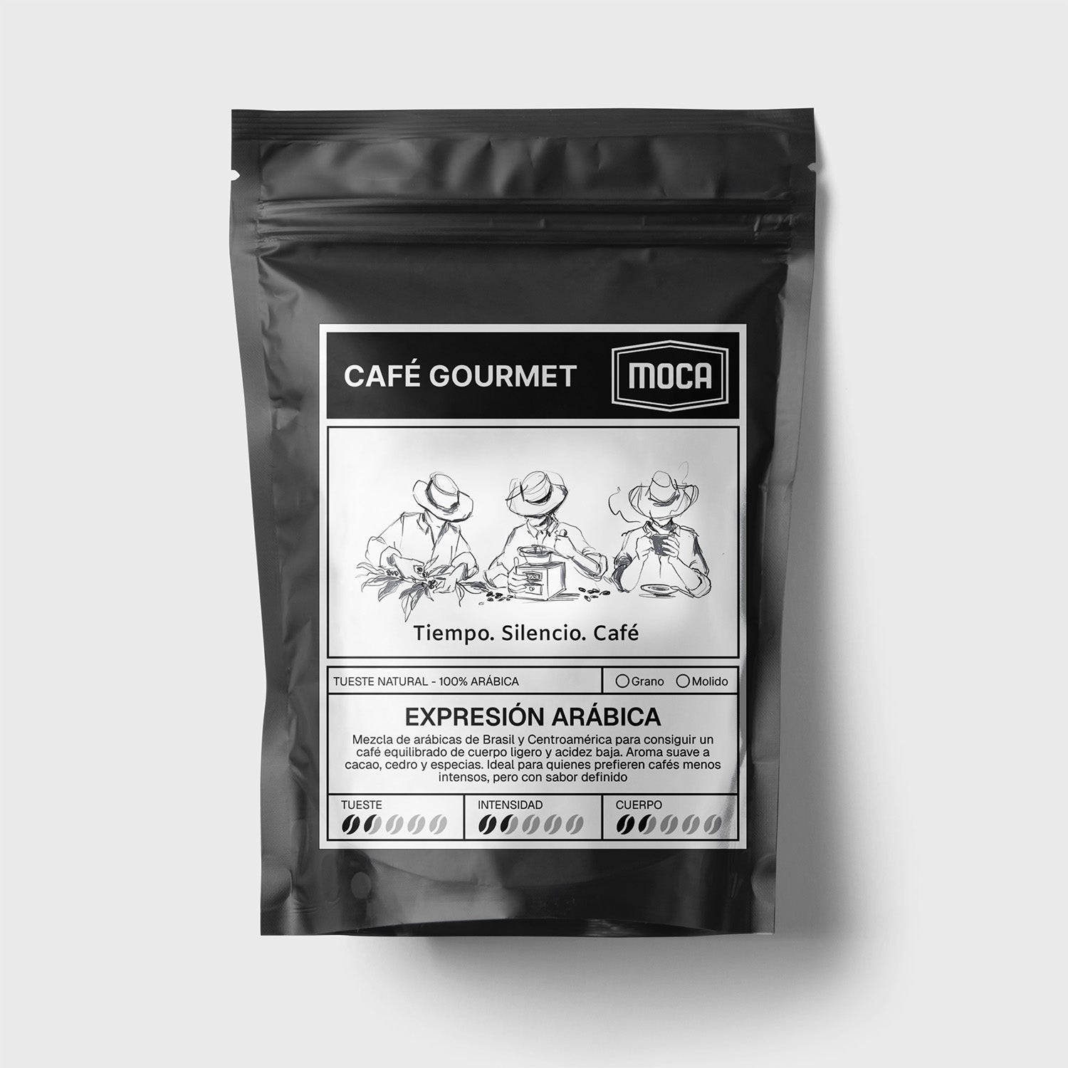 Mezcla de arábicas de Brasil y Centroamérica para conseguir un café equilibrado de cuerpo ligero y acidez baja. Aroma suave a cacao, cedro y especias. Ideal para quienes prefieren cafés menos intensos, pero con sabor definido.